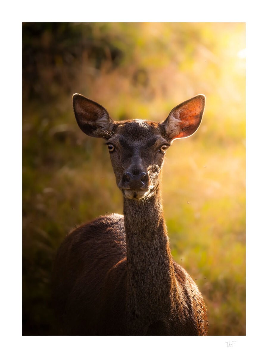 Un échange de regards de quelques secondes avec une biche, à une vingtaine de mètres. Dans l’ambiance des Pyrénées au couchant.