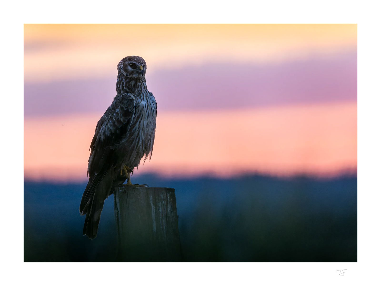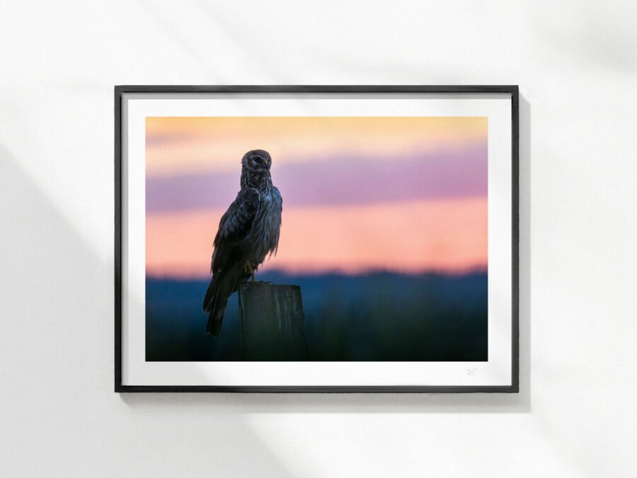 Plein été à la campagne, ce sont les dernières lumières d’une journée particulièrement chaude sur les champs. Après avoir attendu des heures camouflé dans les blés, un busard St Martin finit enfin par se poser sur le poteau que j’espérais, à une dizaine de mètre de moi.