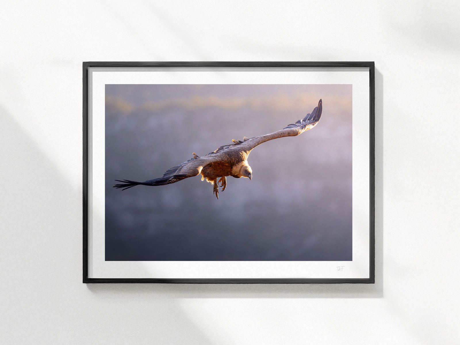 Le soleil se couche sur les gorges, et les grands rapaces effectuent leurs derniers cercles dans le ciel : un vautour fauve s’approche et me jette un coup d’œil.