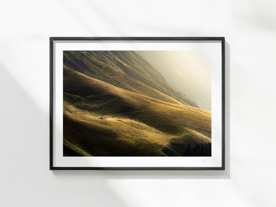 Le papier d’art (Hahnemühle) est contrecollé sur une plaque d’aluminium dibond. Permet d’obtenir un beau tableau rigide à la place d’un tirage papier classique. 2 attaches à l’arrière.