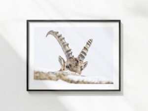 Au cœur du Vercors, en hiver, le grand bouquetin surgit au sommet d’une crête. Un échange de regards d’une seule seconde.