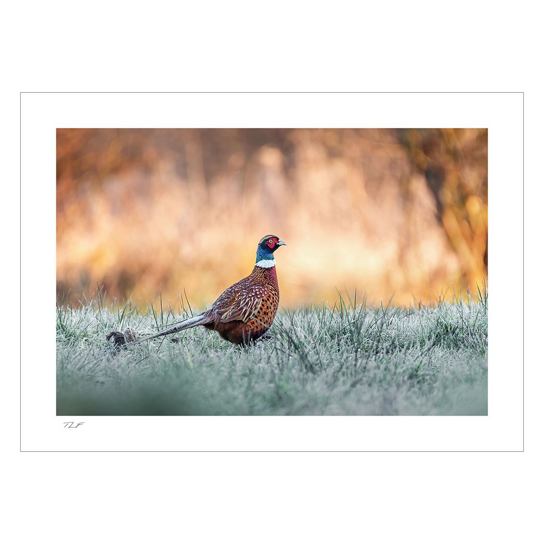 Un petit matin d’hiver à la campagne, allongé dans l’herbe givrée, j’attend que le faisan de Colchide se montre. La patience a été récompensée !