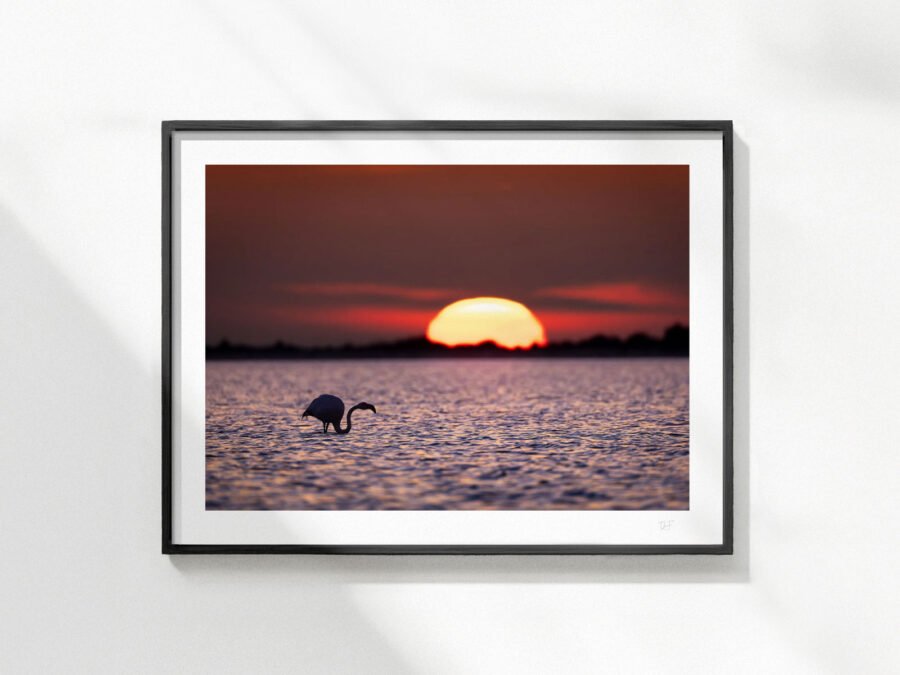 Le soleil d’hiver se couche sur les étang côtiers de Camargue. C’est le calme plat : seul les cris des flamants roses et les clapotis des vagues se font entendre.