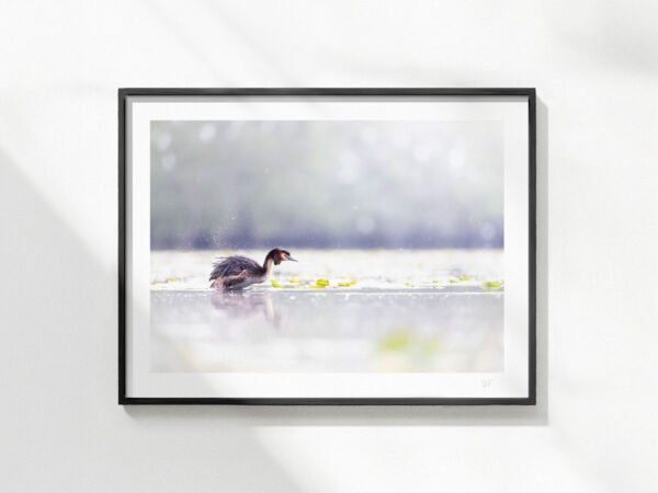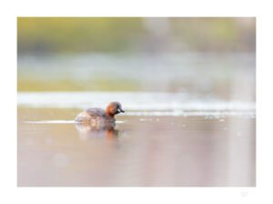 Petit mais costaud, le grèbe castagneux protège farouchement son plan d’eau : il court sur l’eau, il piaille.