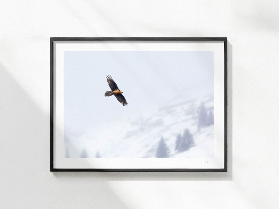 Les dernières neiges de la saison tombent sur les Alpes. Mais ce ne sont pas ces légers flocons qui empêchent le gypaète de survoler les vallées, perpétuellement à la recherche d’une carcasse.