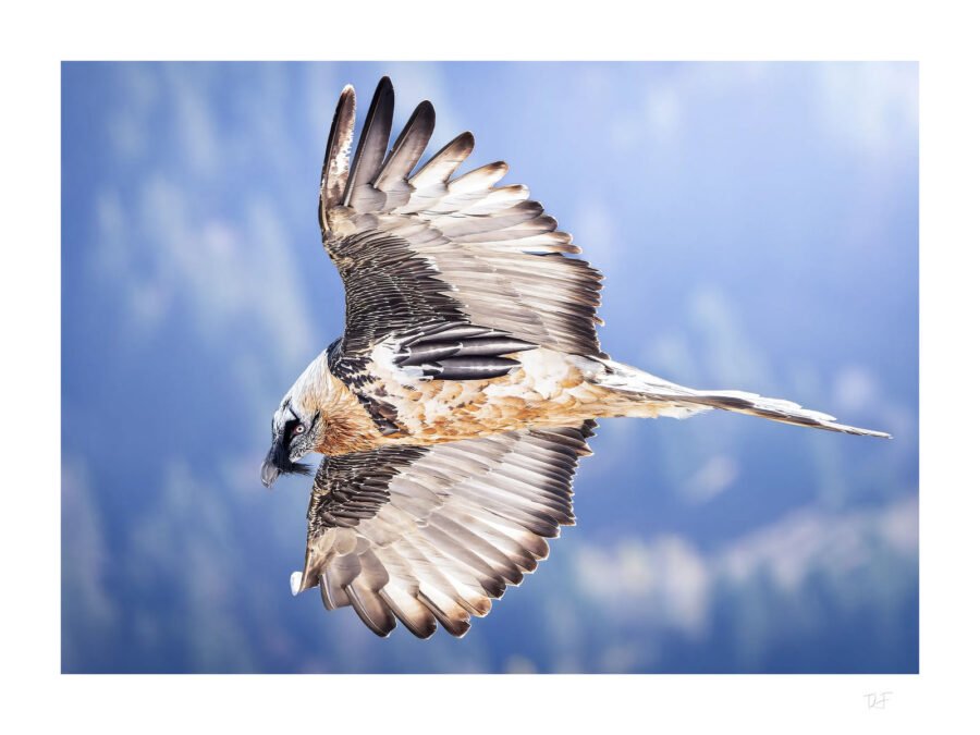 L’immense gypaète barbu survole la vallée à une vingtaine de mètres du sommet où je me trouve. Il est si proche que j’arrive à voir la fameuse « barbe », et c’est d’ailleurs dans ces moments là que cet oiseau de presque 3 mètres impressionne le plus.