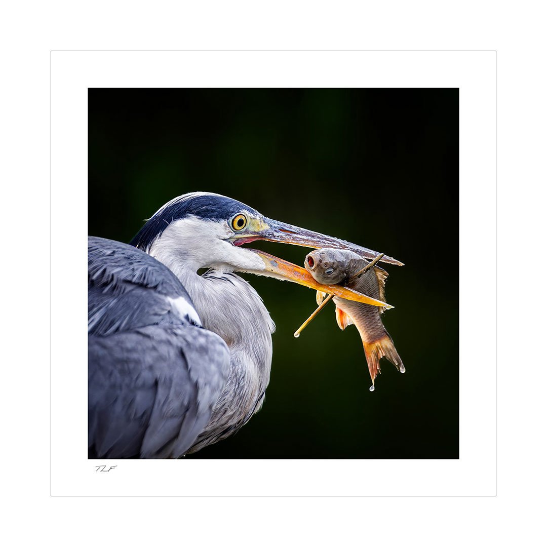 Après plusieurs minutes d’immobilité à guetter la surface de l’eau, le héron cendré réussi à capturer une magnifique carpe : la patience du pêcheur a été récompensée.