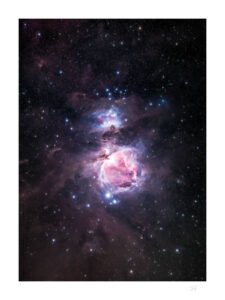 La grande nébuleuse d’Orion, immense nuage de poussière et de gaz interstellaire. Loin des lumières des villes, elle est visible à l’œil nu.