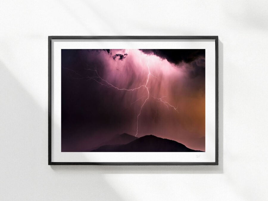 Le papier d’art (Hahnemühle) est contrecollé sur une plaque d’aluminium dibond. Permet d’obtenir un beau tableau rigide à la place d’un tirage papier classique. 2 attaches à l’arrière.