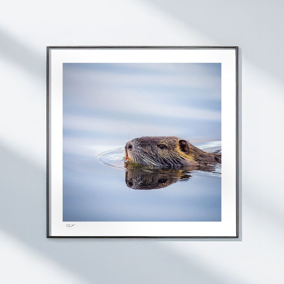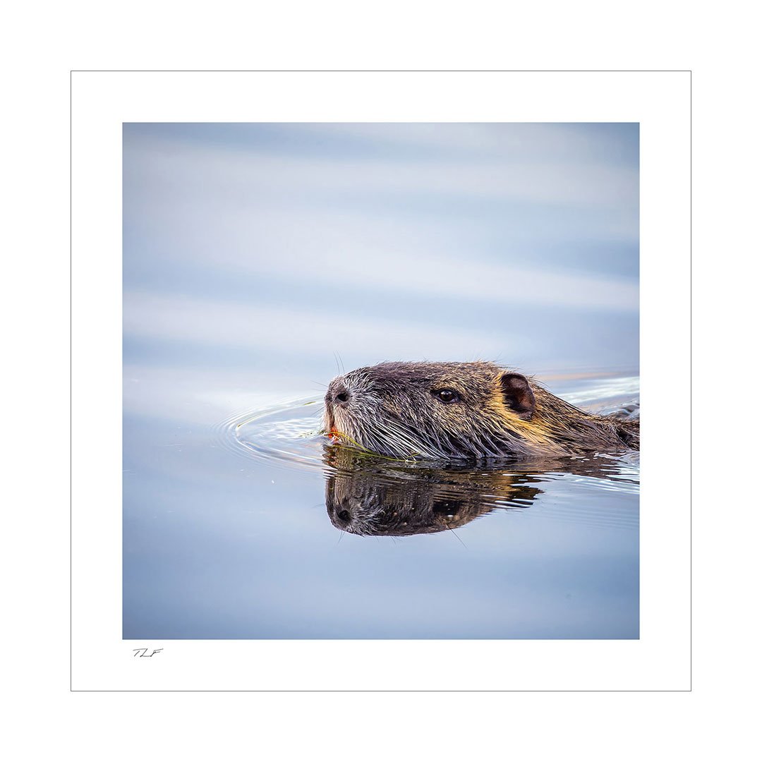 Au petit matin sur l’étang, le ragondin sort une dernière fois de sa cachette avant d’aller se reposer la journée.