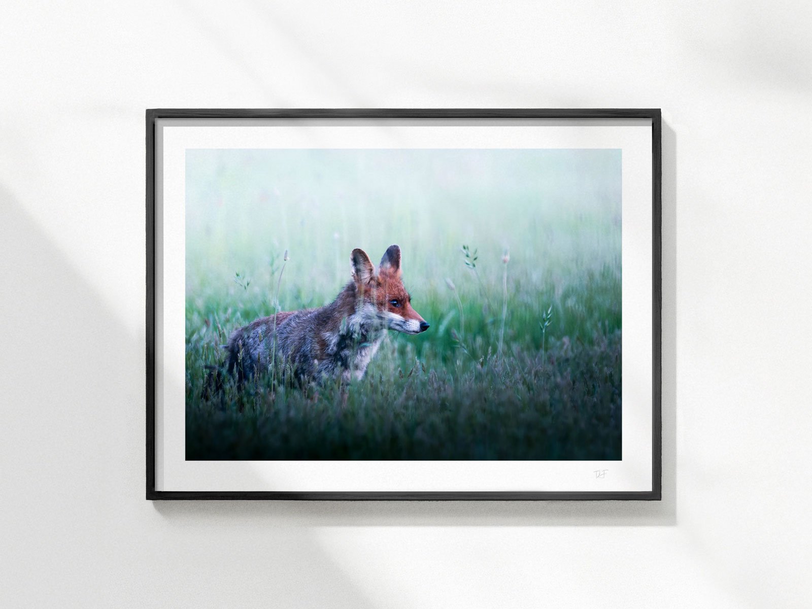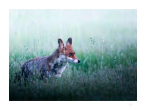 À la tombée de la nuit, le renard roux fait son apparition, il s’arrête un instant pour observer des lapins non loin, puis continue son chemin.